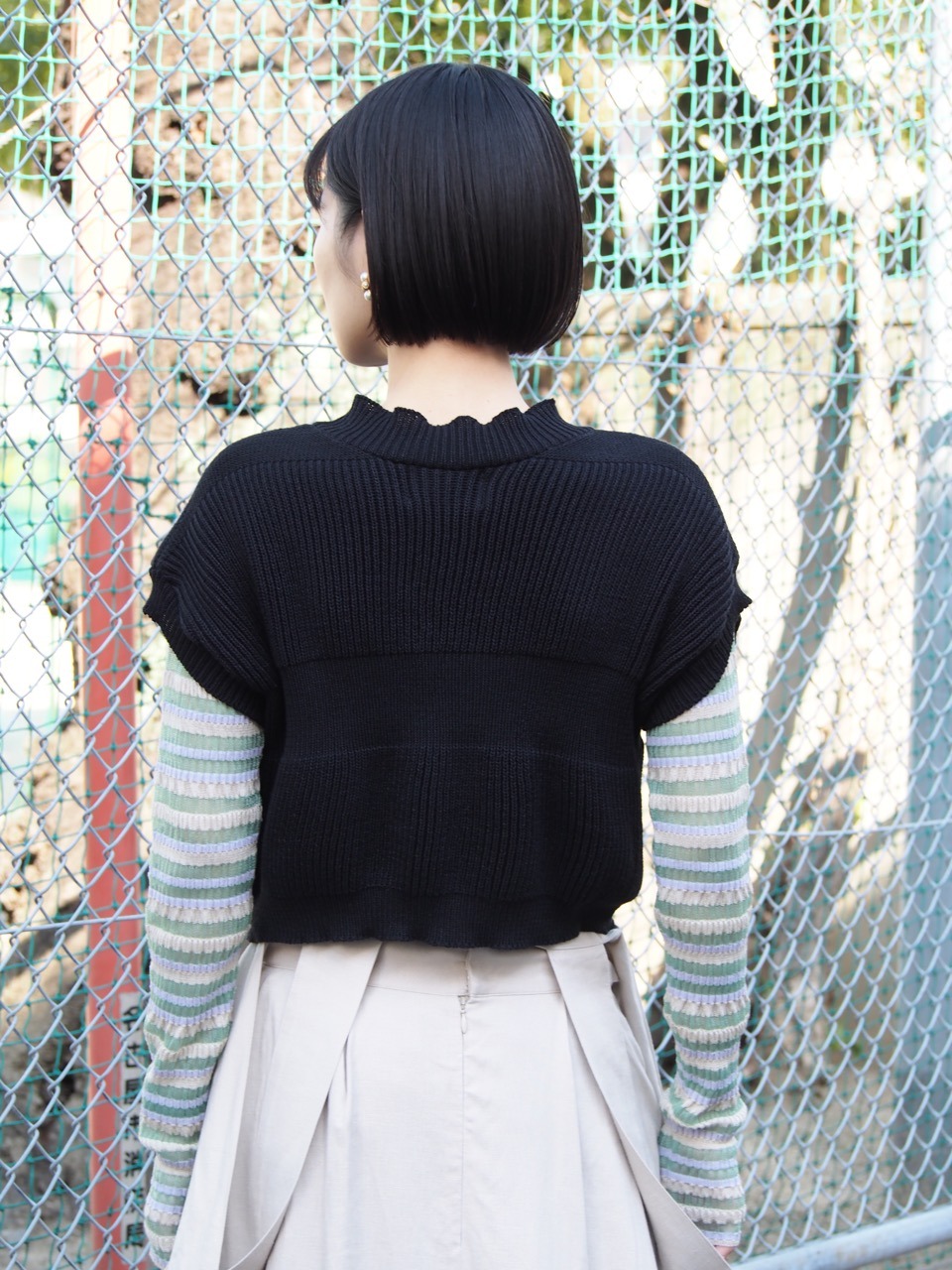 ゆったりとしたサイズ感で、シャツやカットソーと合わせてベストとして春先からご着用できます。