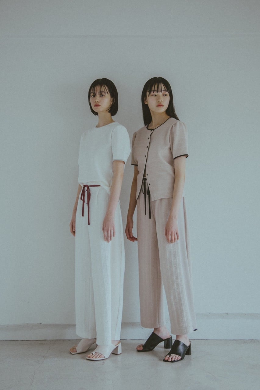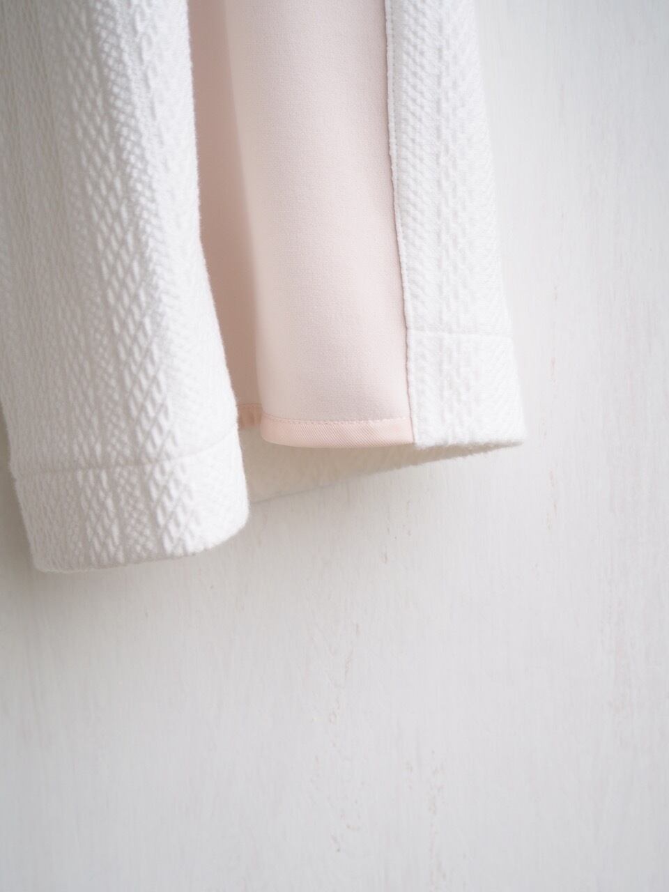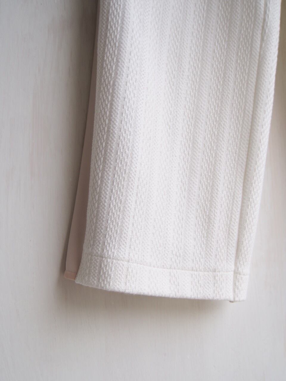 ブリスタージャガードによる細かい柄を縦方向に使用し、ストライプ感でスタイルアップ。