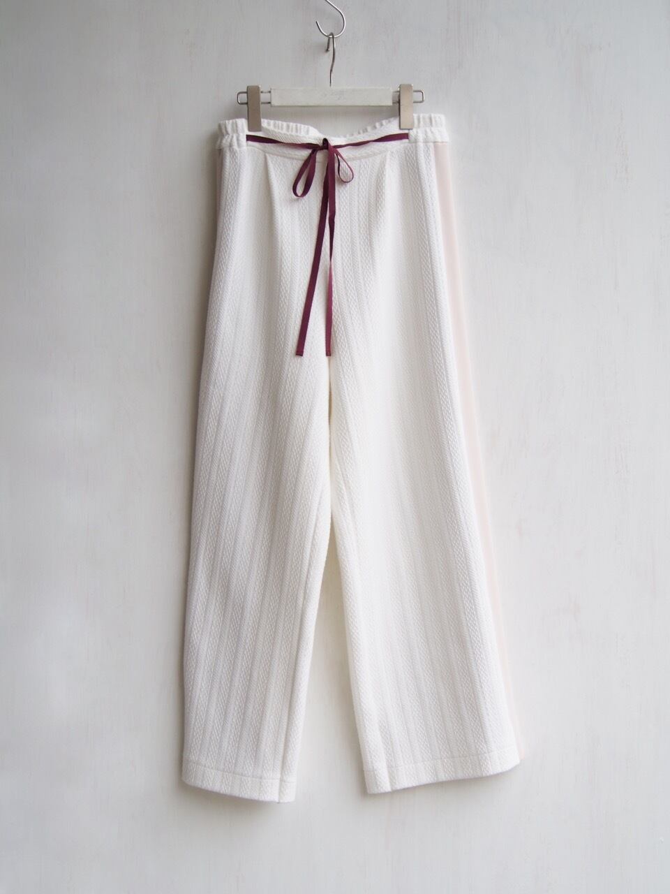 サイドにプレーンな網目のスムースニットをライン上に組み合わせたスウェットパンツ。