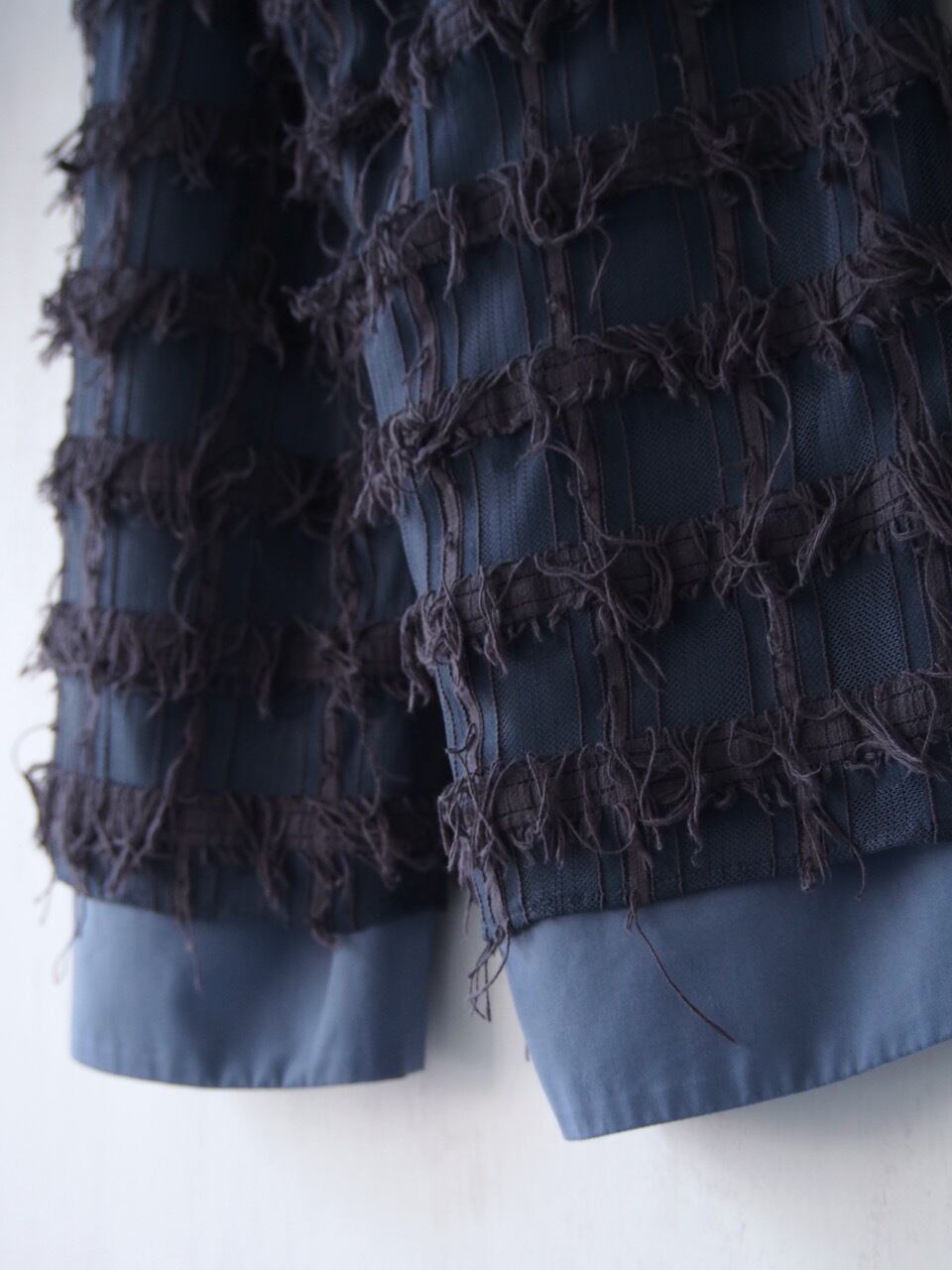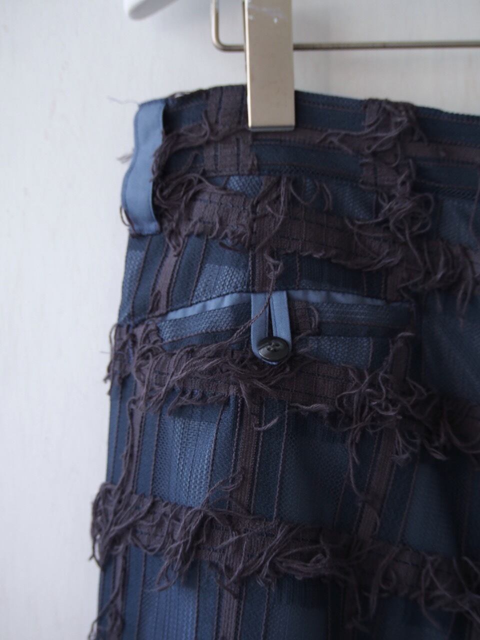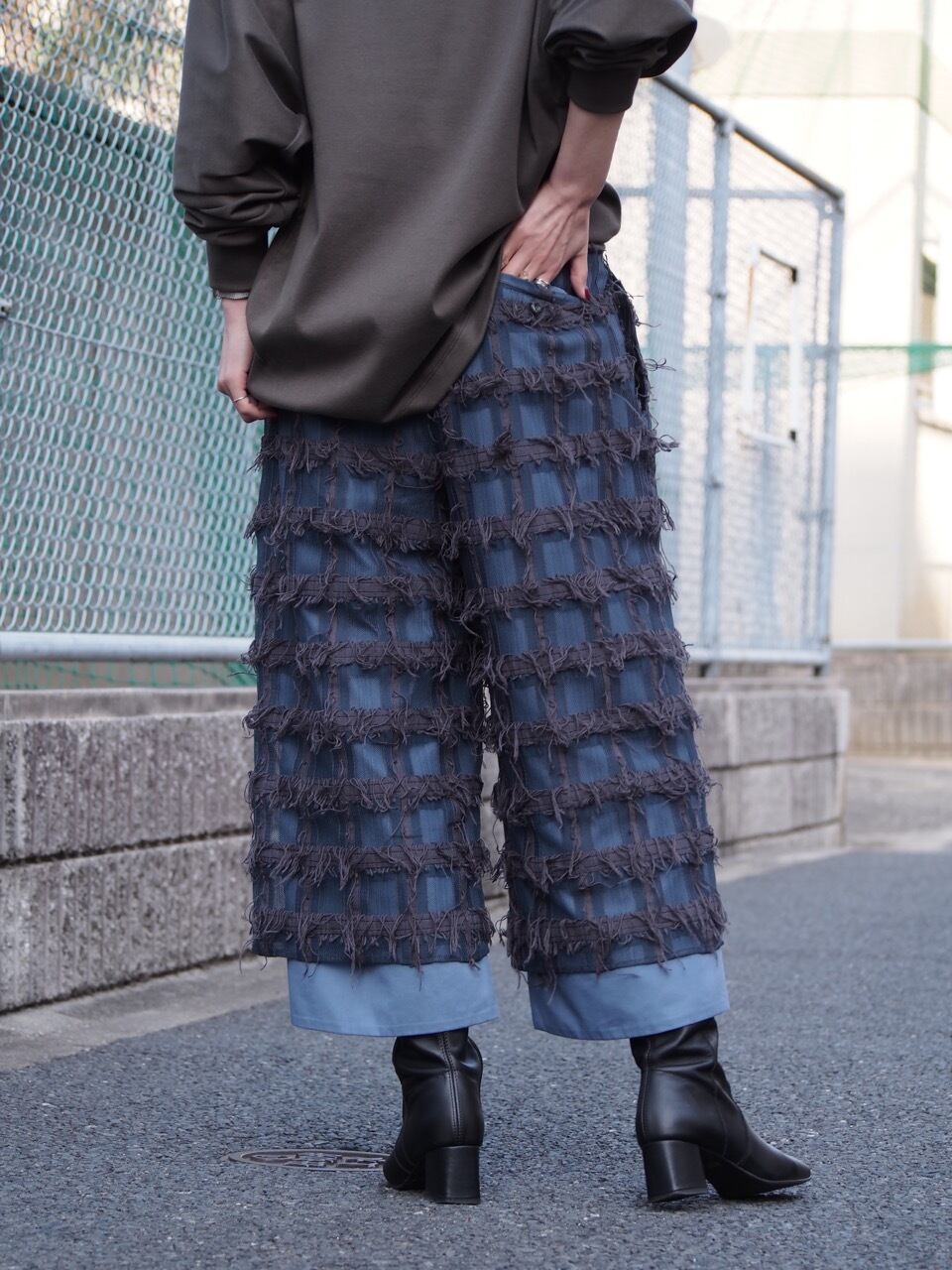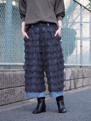 RYU fringe checked lace 4/5 wide pants blue grey【ryu-s2221】