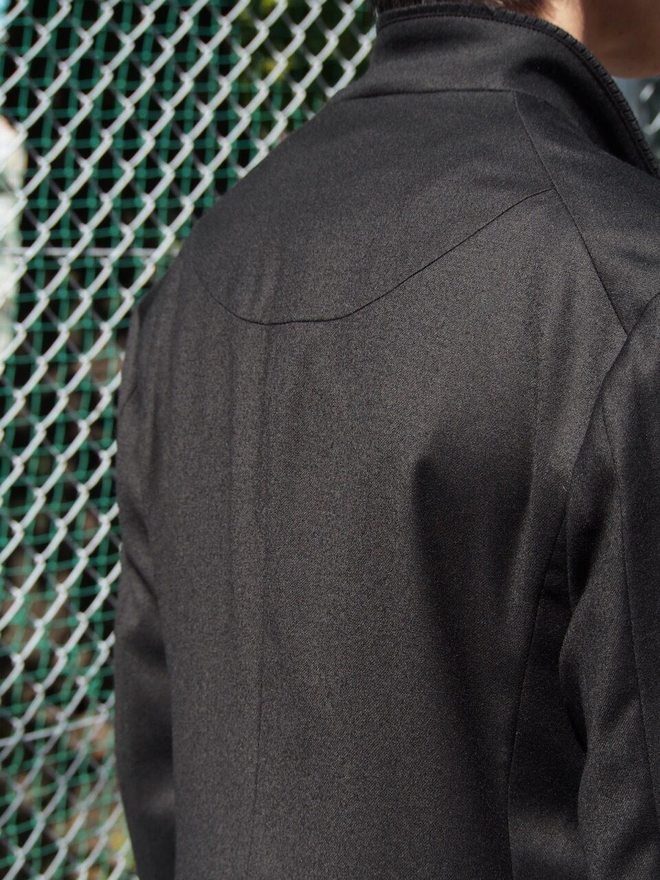 サックコートの形はそのままに、TC(テトロン/コットン)の裏地とリブを繋げデザインとして昇華致しました。
