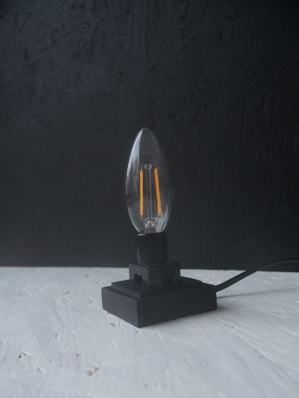 木製の台座に配してある電球を灯せば、忽ちに暖かで緩やかな空間・時間を生み出します。