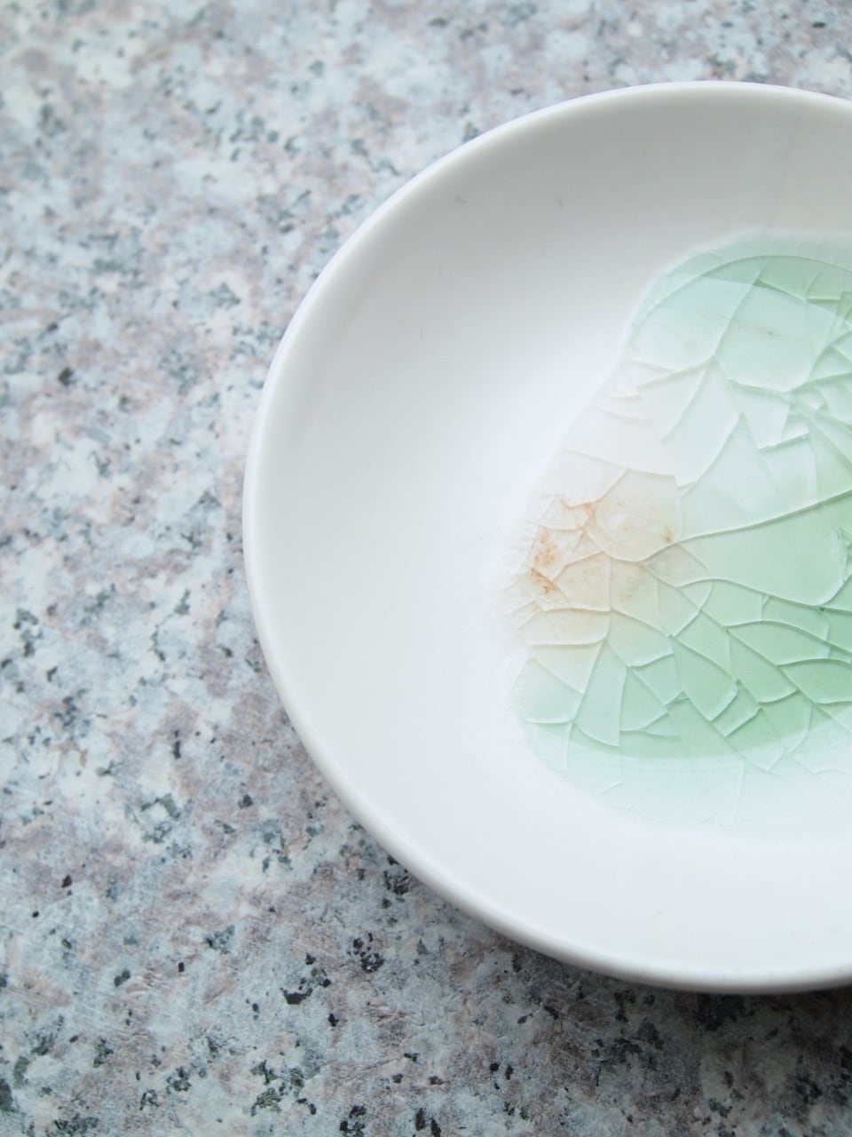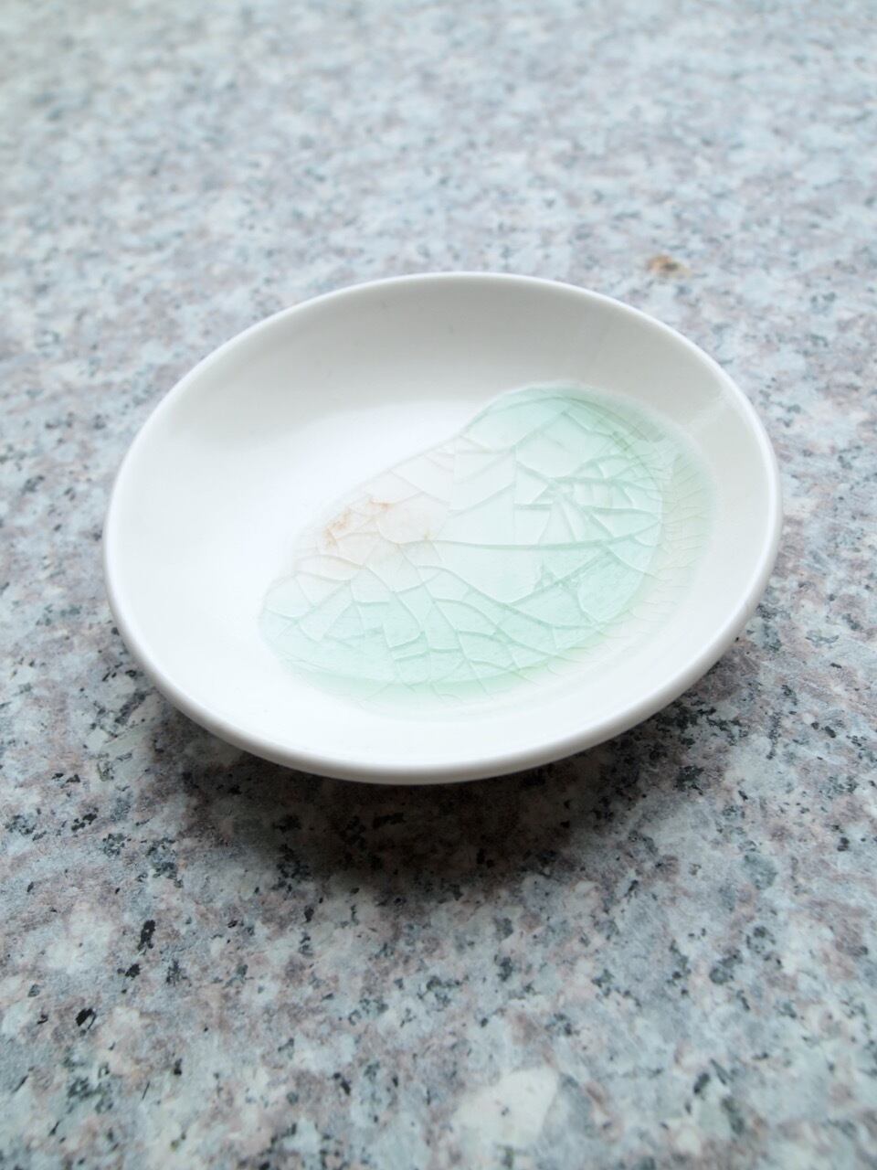 ガラスと陶芸の釉薬(ゆうやく)が 混ざり溶け合い、重力や表面張力の
