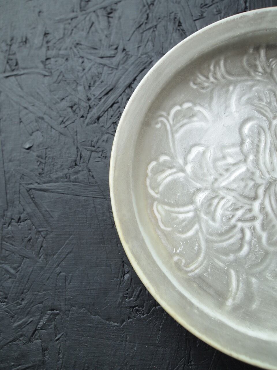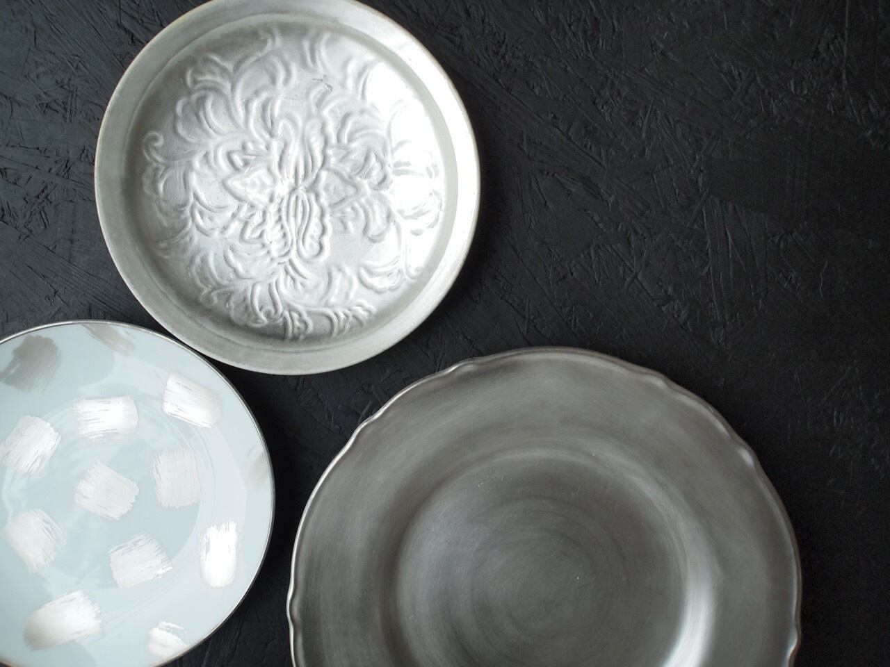 植物や壁紙を思わせるような、彫刻の入った丸型プレート