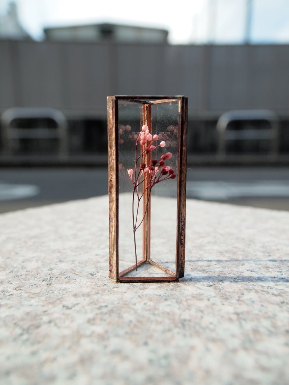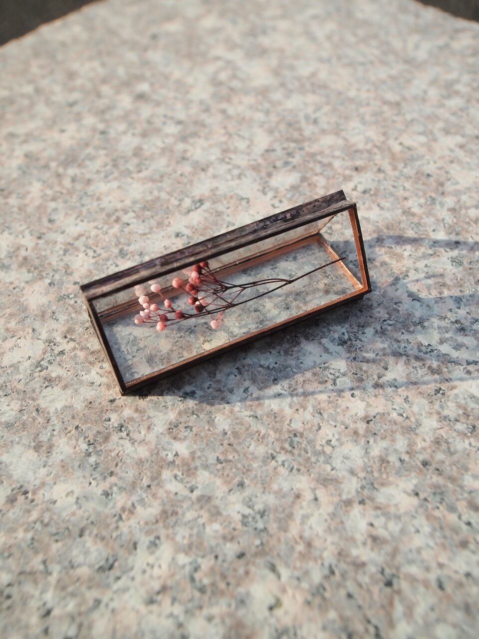 glass,bronze tape, preserved flowers