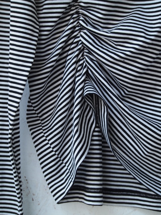 raiMu Border Gather Long Sleeve T-shirt White【RA-23SS1-2-F-WH】